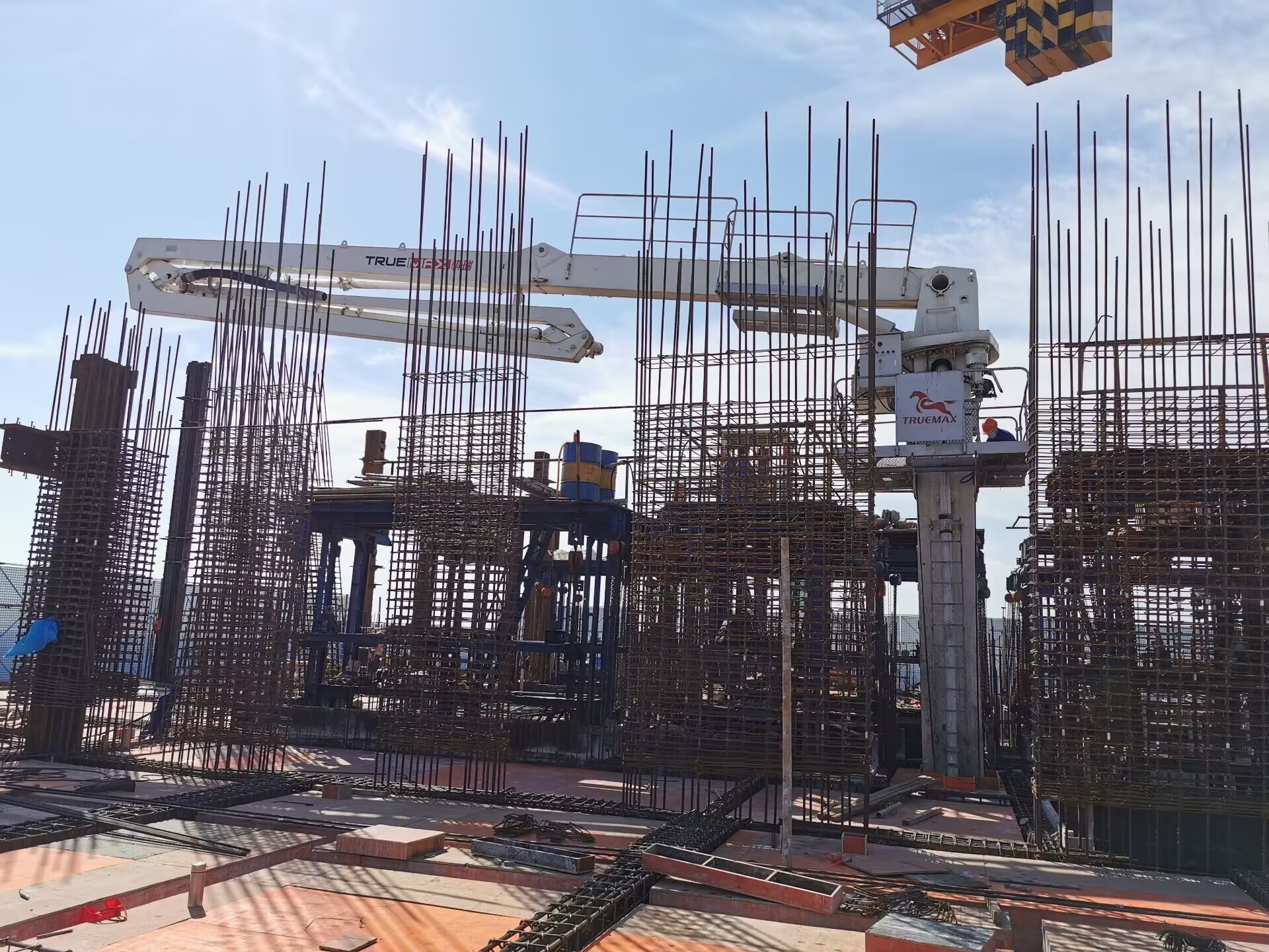 內(nèi)爬布料機的臂架為R型,全液壓驅(qū)動,折疊、展開靈活,布料范圍廣。臂架結(jié)構(gòu)采用高強度鋼板制作,強度大,自重輕。