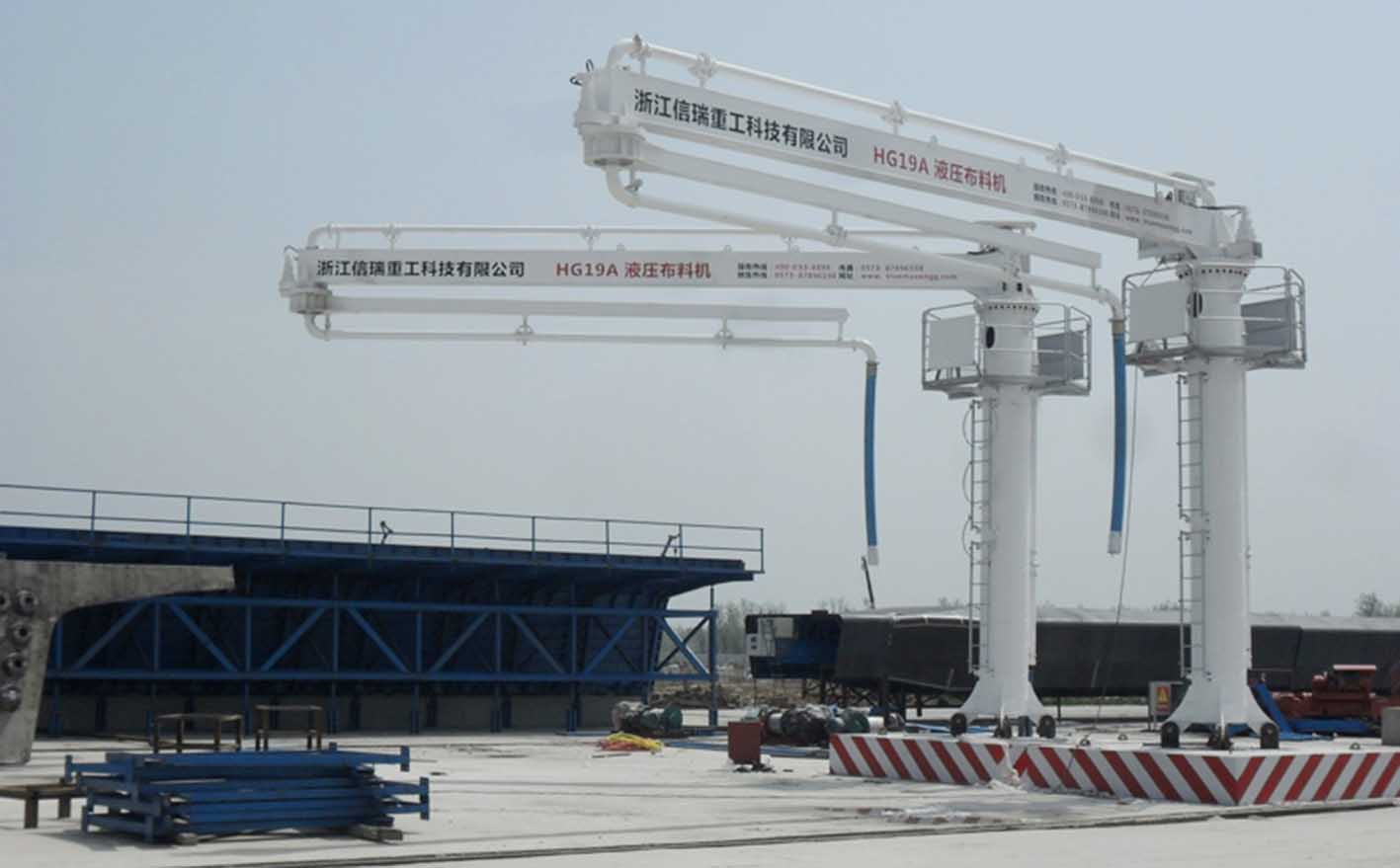 1.本產(chǎn)品為預(yù)制梁場(chǎng)專用布料機(jī),臂架為輕量化設(shè)計(jì),兩節(jié)臂水平旋轉(zhuǎn),全液壓驅(qū)動(dòng),結(jié)構(gòu)